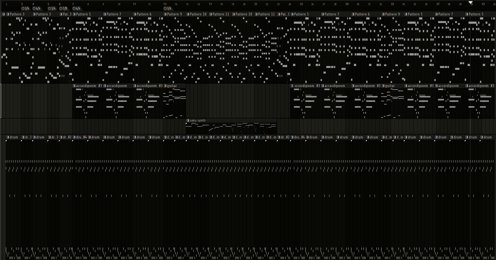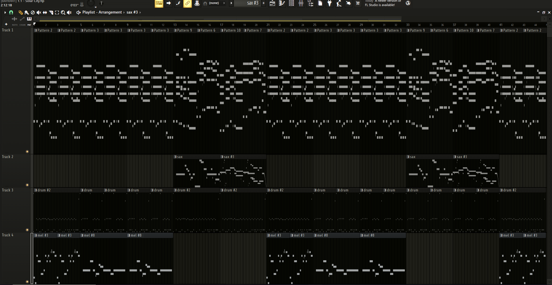 The analog lead and Hammond organ I used throughout is meant to imply the suddenly technogically developing city (as they were some of the first synthesizers to be made). I had the idea to use that lead sound the way a motif would be used.